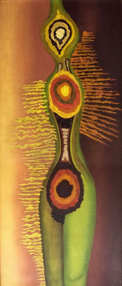Ithell Colquhoun (1906–1988) combined surrealist ideas with the exploration of occult theory, creating visionary works which simultaneously looked inward to the unconscious using automatic techniques, and outward to the cosmos in her evocation of magical forces.