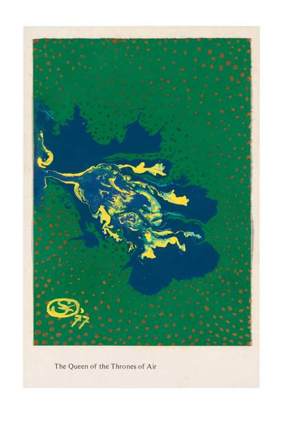 One of her last innovations in the application of automatic practices was her use of dripped enamel paint. In the 1970s she employed this in landscape paintings and in her designs for a pack of Tarot cards, which she created in 1977 (page 85). This was the first abstract Tarot deck and represents both the transcendental forces of the Tarot through pure colour and Colquhoun’s continued experimentation with medium and imagery in the final years of her career.