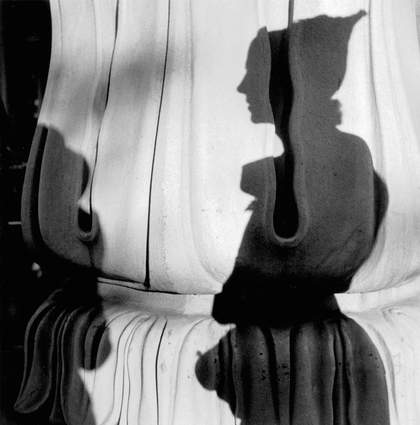 At the same time, her profile as an artist was growing back in London. Penrose and Mesens’s exhibition Surrealist Objects & Poems at the London Gallery in November 1937 included Miller’s Le Baiser (The Kiss): a wax arm, the sort one would have found in a manicurist’s salon, wearing a bracelet of false teeth. The idea was conceived by Miller in Cairo, and created by Penrose under her strict written instructions. Mesens and Penrose also included several of Miller’s photographs in their monthly London Bulletin, including her 1937 portrait of Eileen Agar – with Agar’s shadow profile rippling across one of the white stone columns of Brighton’s Royal Pavilion – and Miller’s now famous image of the Egyptian desert, Portrait of Space 1937, which went on to directly inspire René Magritte’s painting Le baiser (The Kiss) 1938.